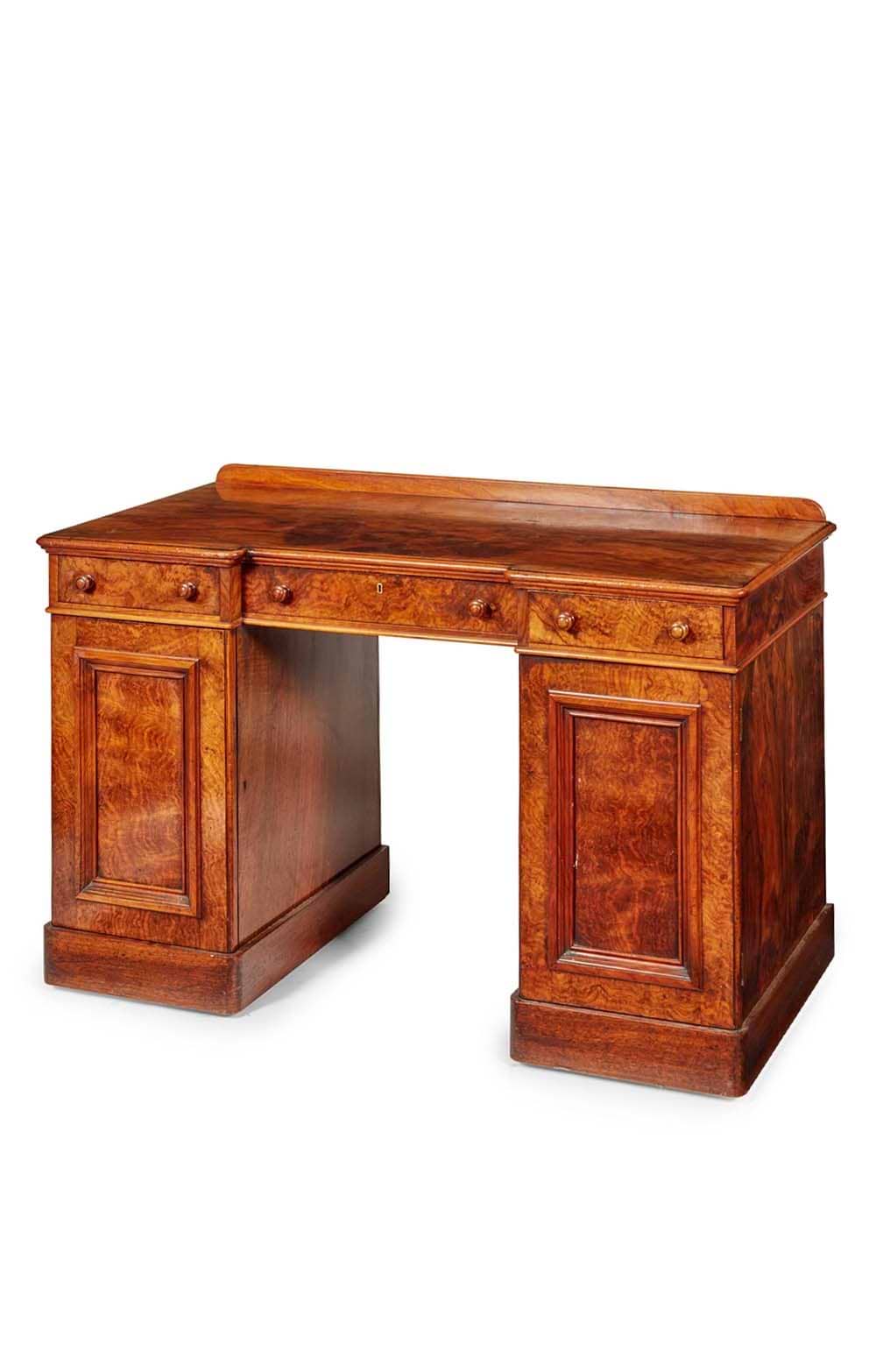 Victorian Walnut Inverted Breakfront Pedestal Desk, 19th Century