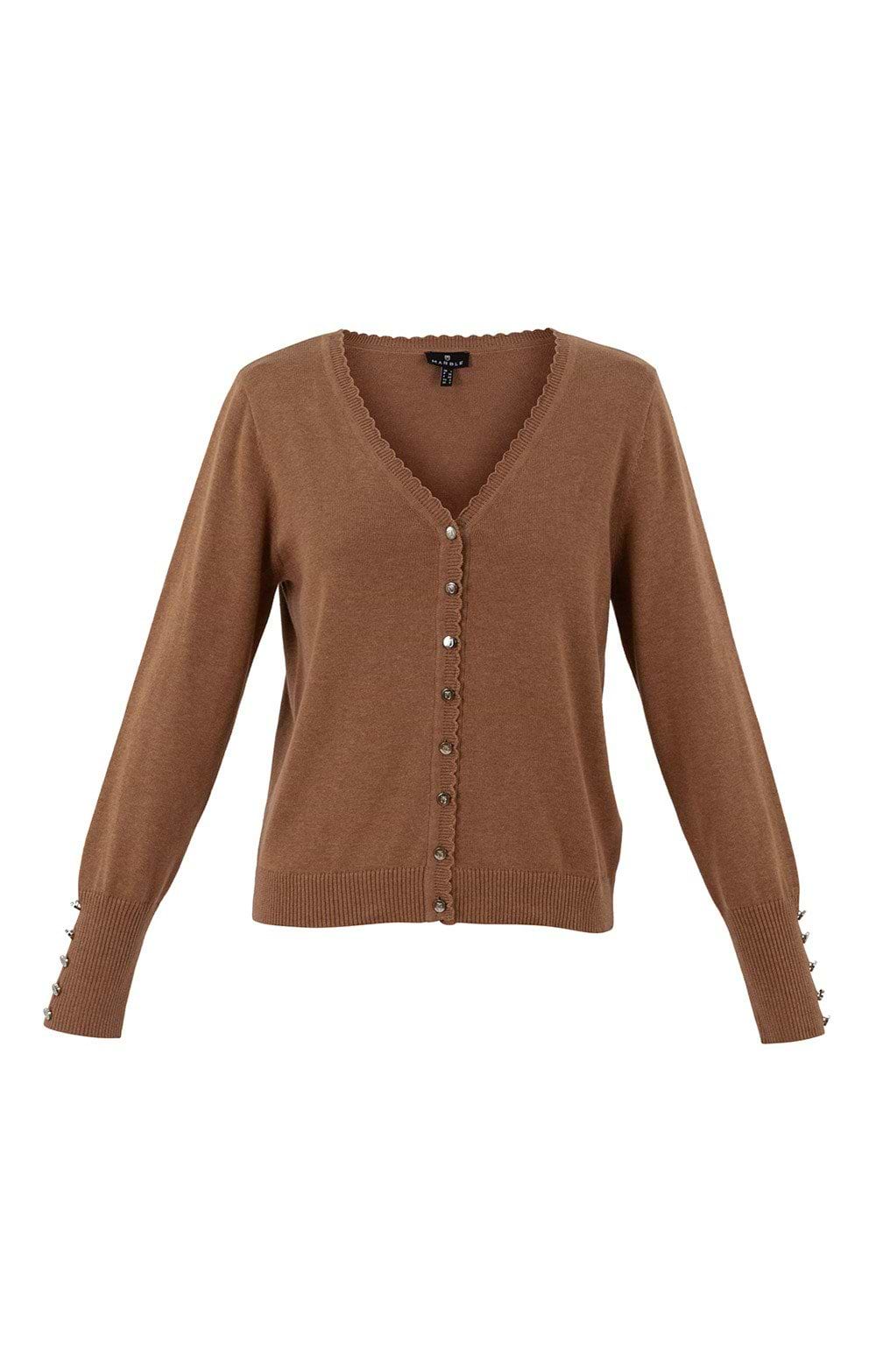 Ladies Marble V Neck Buttoned Cropped Cardigan
