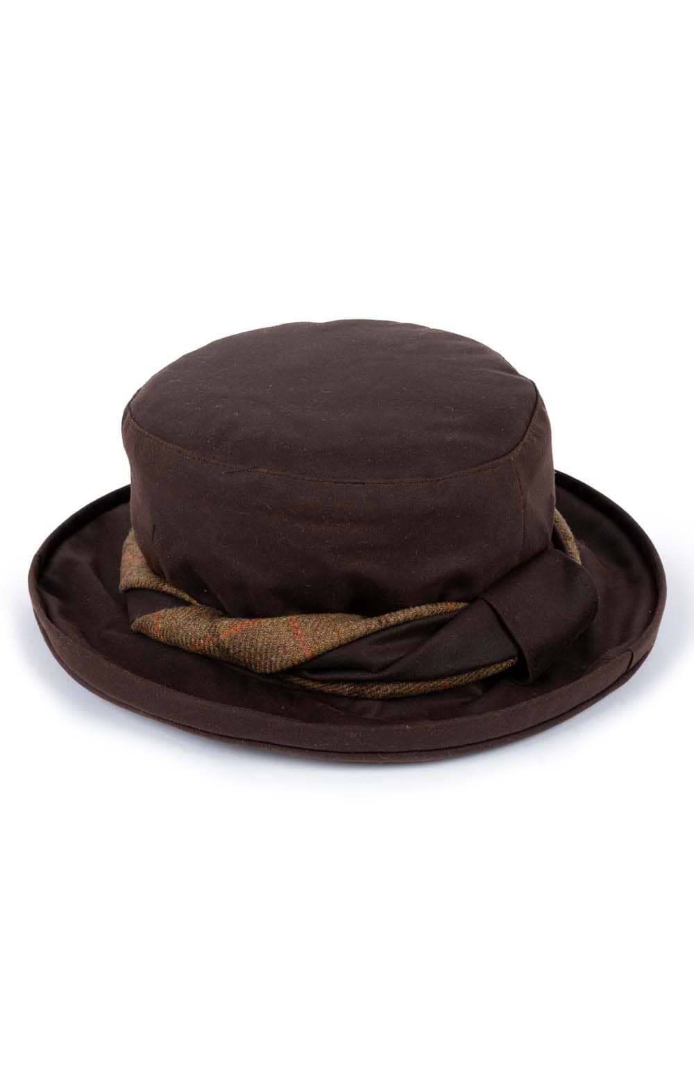 This practical wax Chiltern hat with authentic tweed band combines weather protection with traditional Scottish styling.