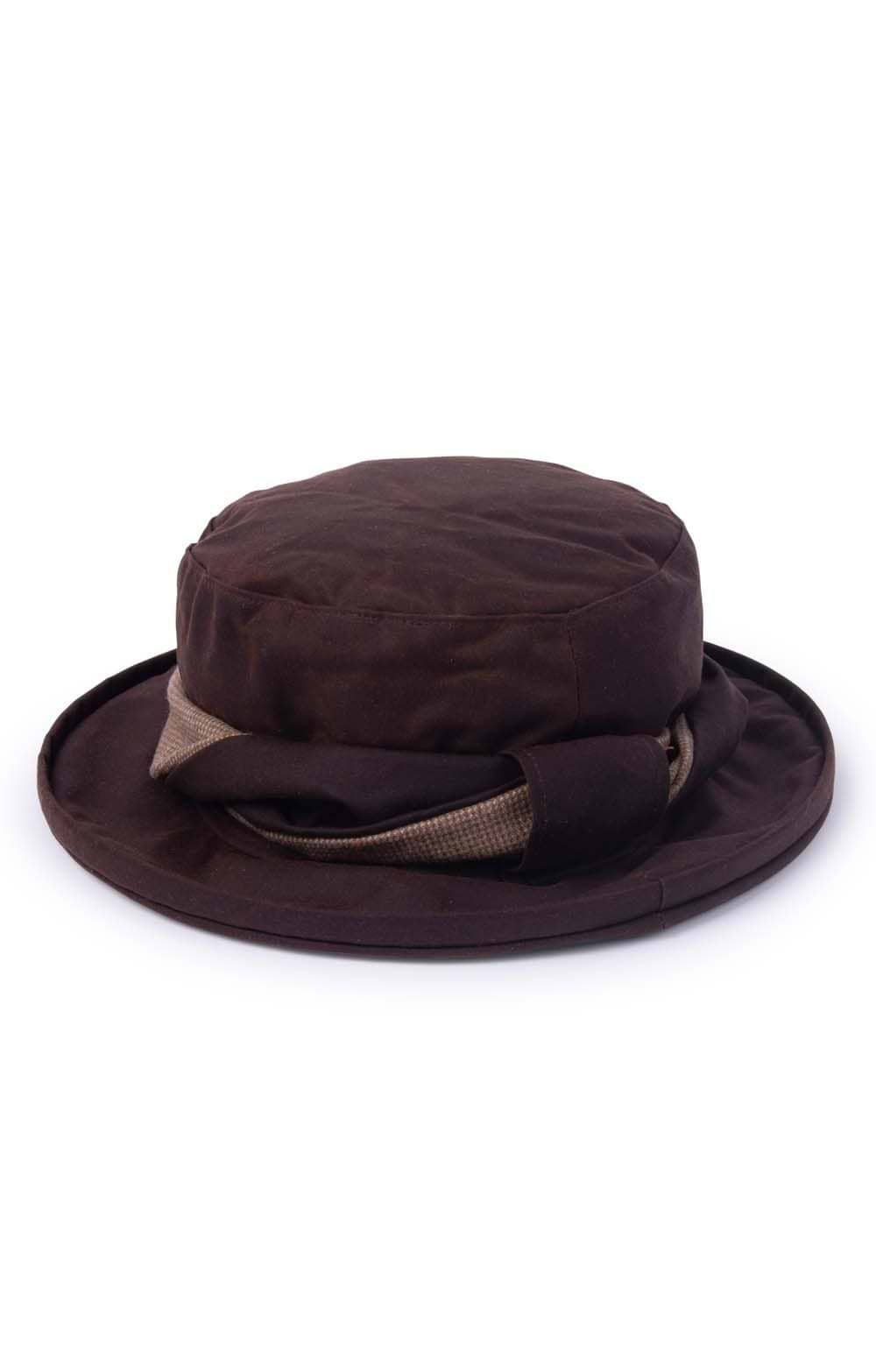 This practical wax Chiltern hat with authentic tweed band combines weather protection with traditional Scottish styling.