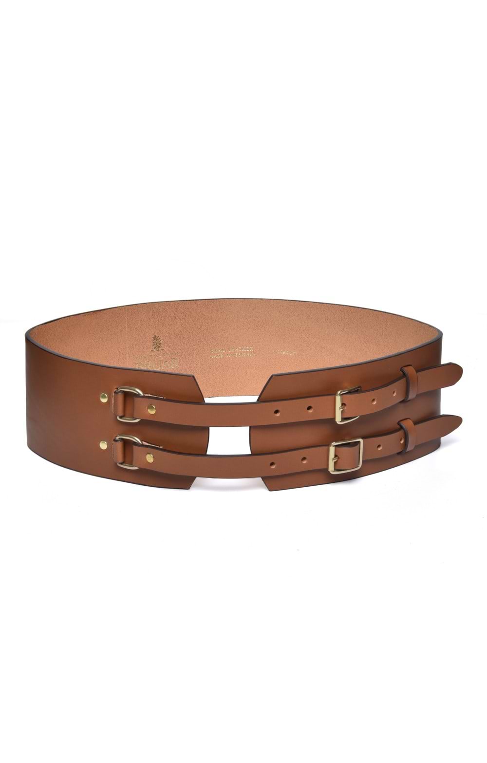 Wide belt with double buckle fasteningHigh quality leatherGold-tone buckle detailCinches the waistHand-crafted in the UKHand-crafted in Britain by Mackenzie and George, this piece is a must for any lady serious about country style.