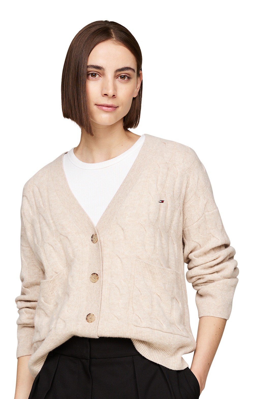 Ladies Tommy Hilfiger Pure Wool Cable Knit Boxy Cardigan